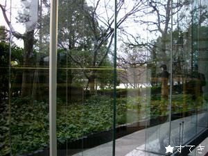 ザ・パークは上階まで吹き抜けになっていて、開放感のあるロビーラウンジ。外もガラス張りでお庭がよく見えます。